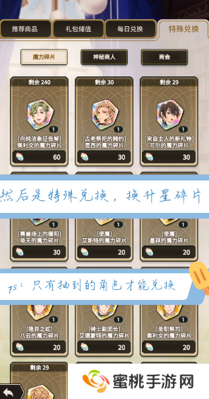 6、此外玩家们还将能够在商城的特殊兑换里面获取到自己已拥有角色的碎片。