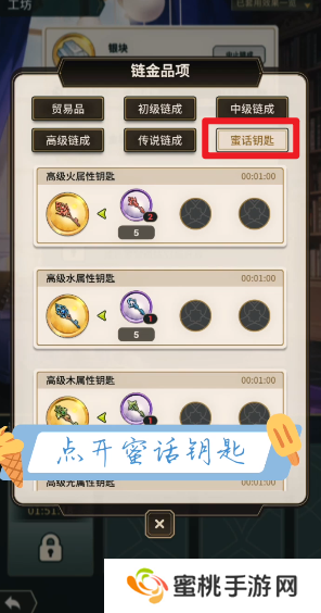 3、蜜话的钥匙可以在工坊之中进行合成,点击主页面的【工坊】按钮就能够花费材料合成钥匙。