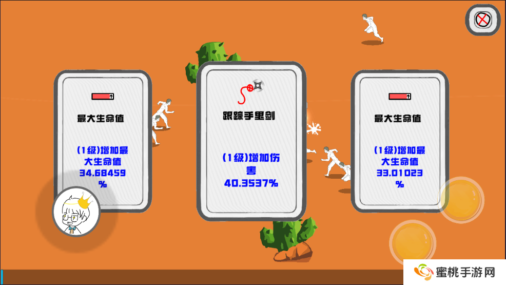 2、在击杀一定的敌人之后可以在三个随机的buff中选择一个提升战斗力;
