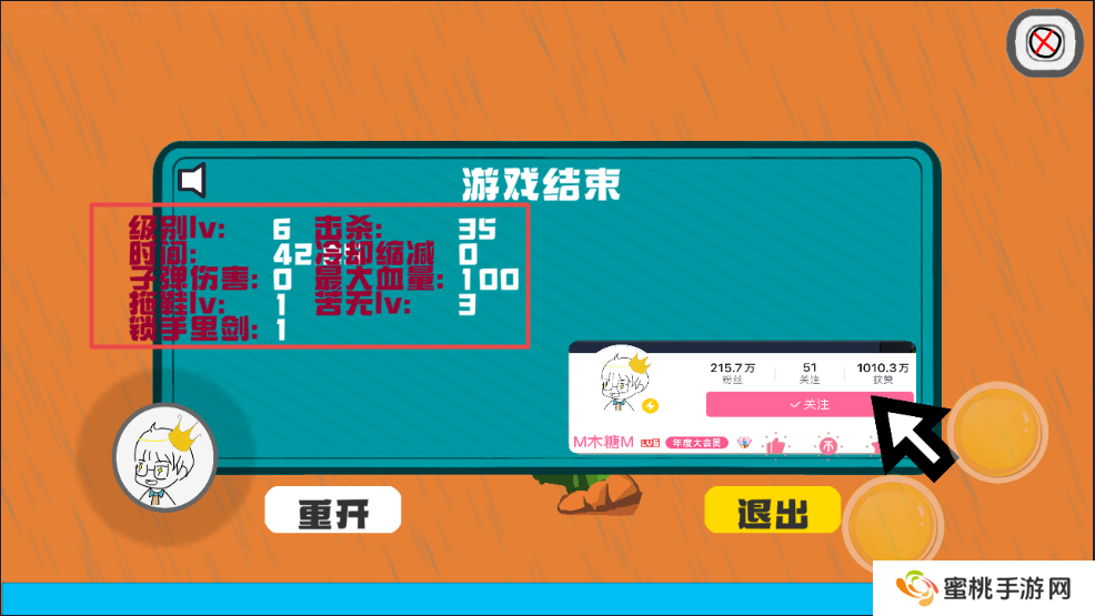 3、游戏结束后可以看到对于这一局的数据总结,可以帮助你下一次战斗。
