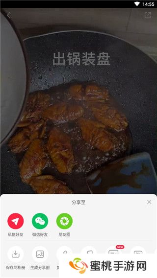 6、如果有喜欢一起做美食的朋友,还可以点击右上角分享给他一起进行观看制作。
