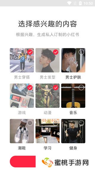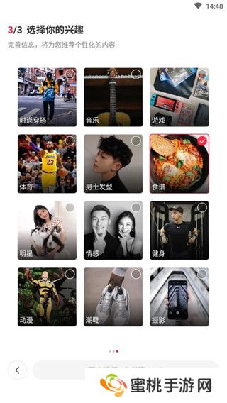 3、选择感兴趣的内容,系统会根据这些进行推荐;