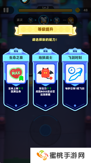 1、闯关的过程中没当角色等级提升时玩家们就能够为角色选择不同的技能。