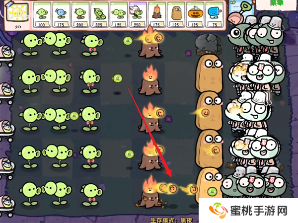 6、通过植物之间的组合,比如豌豆射手和火炬树桩之间的配合来 发挥出更加强大的攻击力。