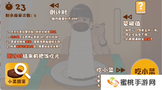 需要玩家注意的是每一关都充满了未知的挑战和趣味性,独特的游戏机制等着玩家前去进行解锁的,玩家需要在倒计时结束前完成所有米饭的挑战,当玩家完成挑战之后就可以获得到一定的资源了。