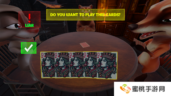 4、玩家们需要根据主牌轮流打出卡牌,玩家们可以选择跟着出牌也可以对其进行质疑。