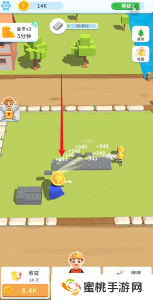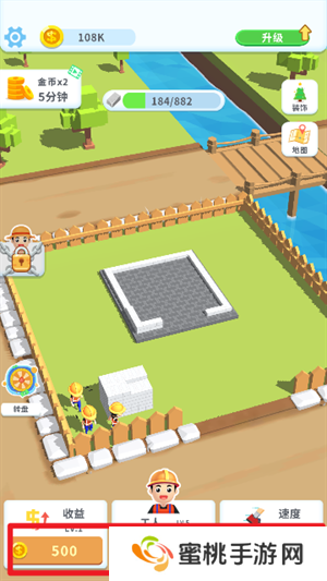 1、玩家们进入游戏之后,将会需要派出自己的工程队进行建筑项目的建设,点击屏幕就能够加快工人的速度。