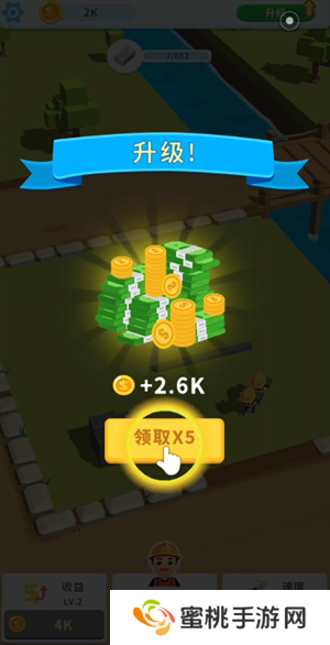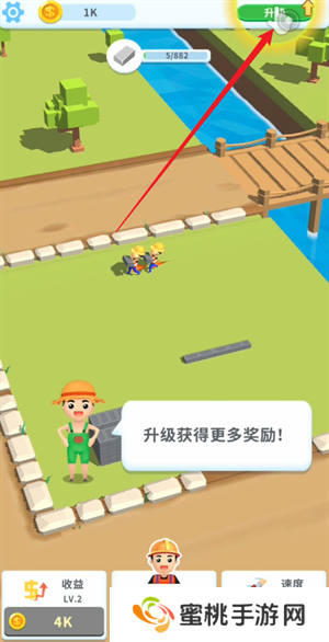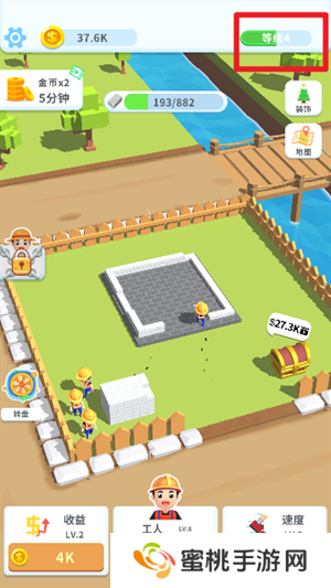 2、随着场景内工人的建造进度推进,在右上角可以看到等级的提升进度。