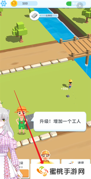 2、点击工人下方的按钮进行升级,就能够增加自己工程队的人数。