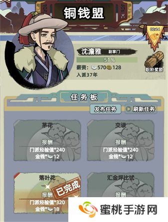 根据职位的不同影响薪水的不同,做门派任务得到经验并通过门派武考升职。