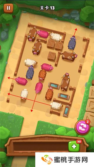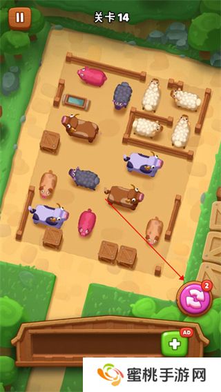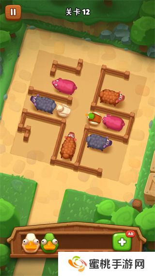 1.主要的玩法就是通过点击来让农场内部的各种动物们都走出区域,由此带来趣味十足的消除冒险。