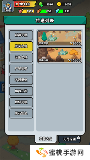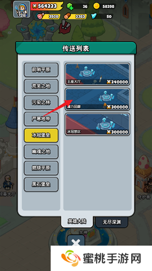2、接着玩家们在传送列表中选择战力较低的区域,点击即可传送。