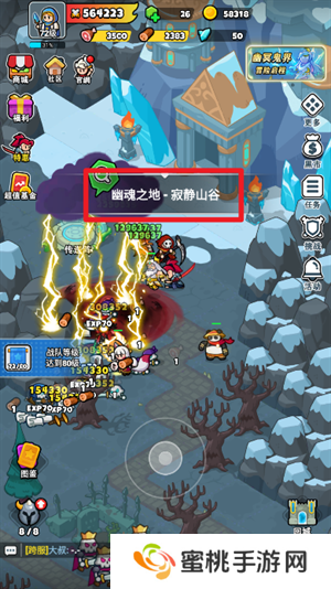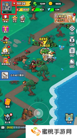 4、玩家们的战力较高可以轻松快速的击败怪物获取到经验值,在左上角可以看到正在快速的升级。