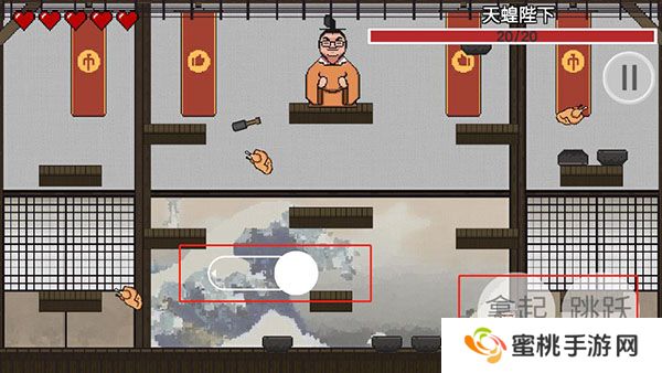 3、同时还需要躲避掉落的危险炸弹,当我们被击中后就会损失生命值,生命值清空后即为游戏失败。
