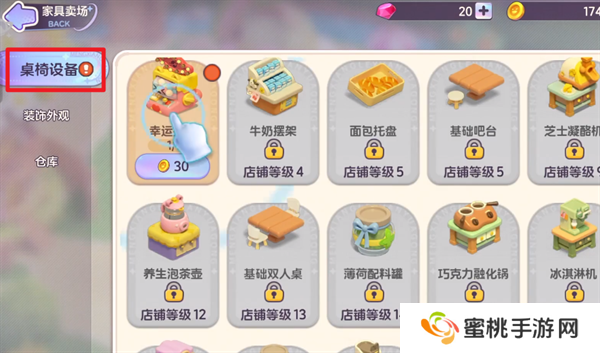 1、玩家们首先需要在家具卖场的【桌椅设备】分类里面购买一个幸运扭蛋机。