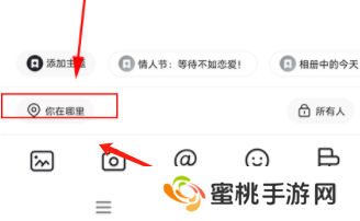 2、在内容页编辑完自己想要发布的内容后,点击打开下图所示位置“你在哪里”