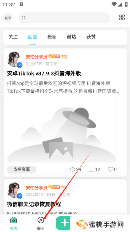 2、接着点击下方的“圈子”,包含了安卓资源,音乐资源,影视资源等多板块的资源。