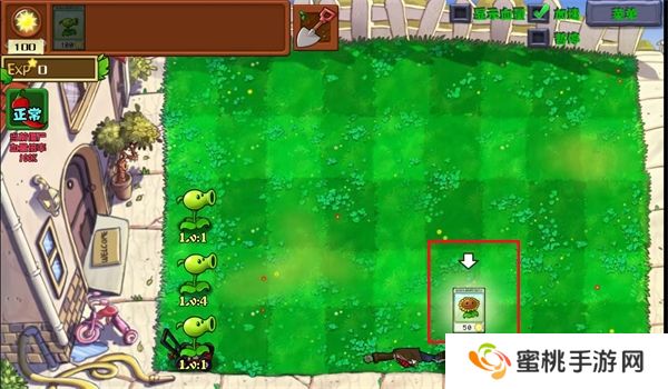 4、进入关卡之后的第一步就是点击植物栏里面的卡牌进行种植。