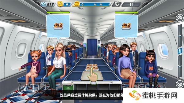 4、到达客舱后可以在顾客的头顶看到顾客的所需要的美食,玩家们拖动食物即可完成服务。