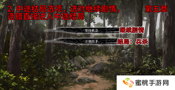 2、在第五章的树林剧情中选择【立刻出手】,就能够触发结局【兵杀】。