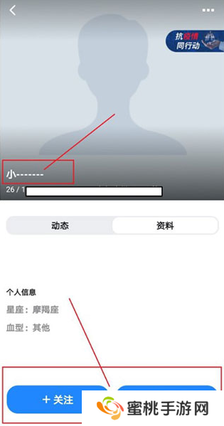 5、在该用户界面,我们可以点击底部的操作,进行关注或聊天。
