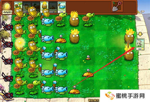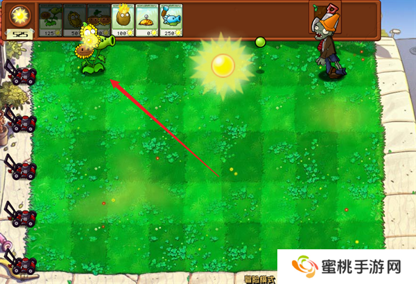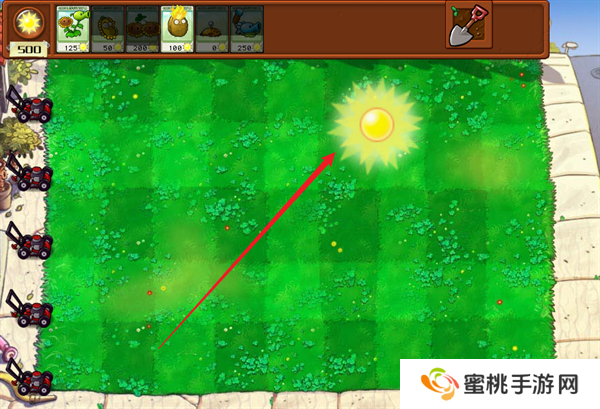 8、关卡内部会掉落阳光,拾取之后就能够消耗阳关来进行植物的种植。