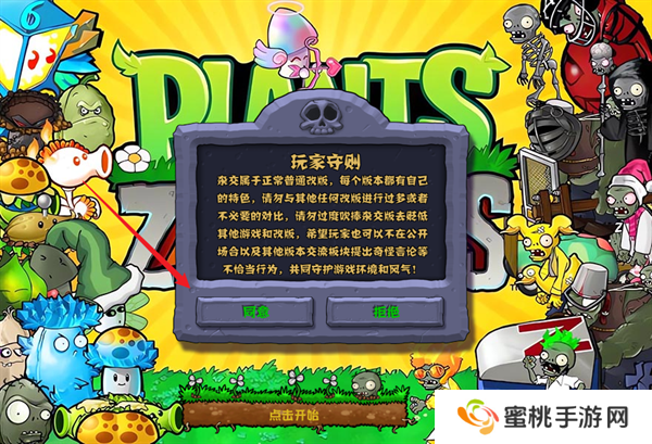 1、玩家们进入游戏之后,首先会需要同意其中玩家守则的弹窗。
