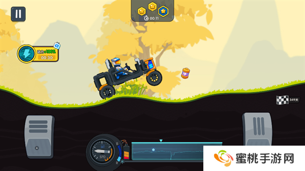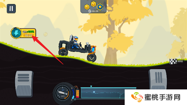 2、玩家们点击左侧的图标即可使用道具增加赛车的动力。