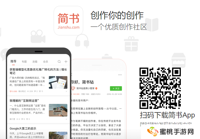 简书是国内领先的创作游戏化社区,任何人都能在简书上进行创作自己的作品。