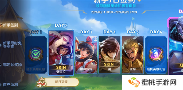 4、在新手签到界面,还会有各种英雄以及皮肤等待你进行领取。