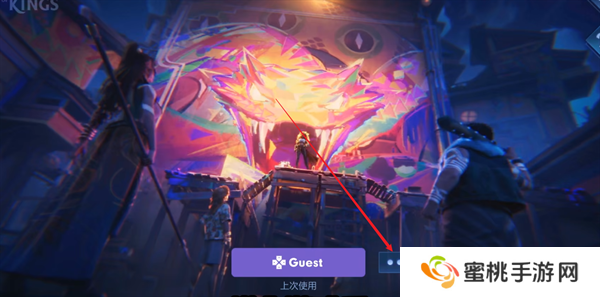1、玩家们首先需要下载安装完成游戏,然后启动游戏进入登录界面当中,如果只是想尝试一下,可以直接点击屏幕中间的【Guest】,如果需要进行登录,则点击右侧的【…】