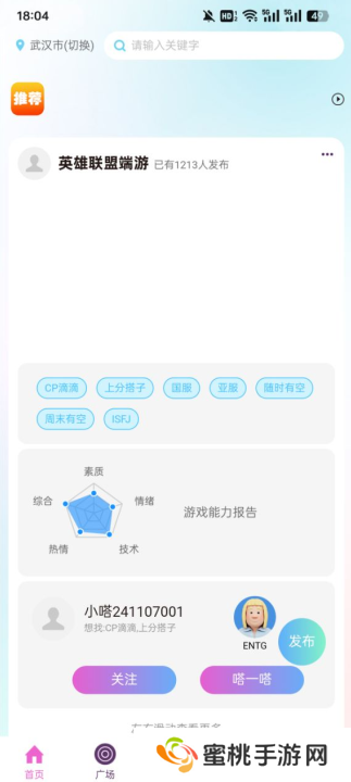 3、软件中还有动态广场,你可以自由的去发布动态,可以让其他人更好的去了解你,方便找搭子
