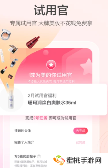 【试用官·福利社】完成每月发帖任务,成为美的你专属试用官,优先体验新品美妆、彩妆、护肤送不停;福利社内更有超多试用、积分兑换活动每日上线,天天有惊喜。【UGC热门社区】海量用户发布原创种草图文和视频,看图刷视频搭配AR试妆,随时随地体验真实妆效。和美粒们一起记录变美的每一小步,交流美丽心得。【AR试妆】- 彩妆单品·冲动剁手前试个妆,新品彩妆色号全,在线试妆让你不花冤枉钱!- 主题妆容·想要尝试流行妆容?每周更新当下热门妆容等你来试!边拍边学,化妆小白也能轻松变美!