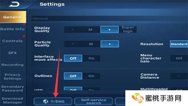 2、接着玩家们在设置界面的左下角点击中/ENG按键。