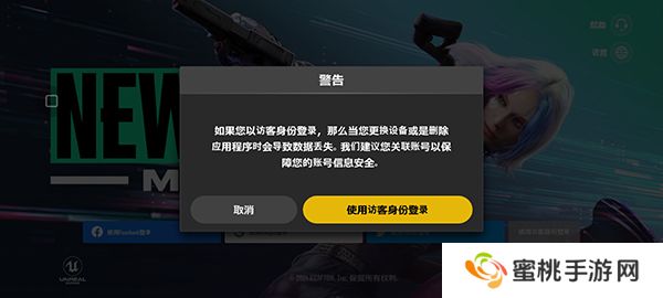 2、这里以游客登陆为例,点击游客登陆后,在弹出的警告中点击使用访客身份登陆即可。