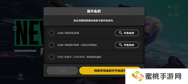 3、接着玩家们勾选服务条款并点击同意。
