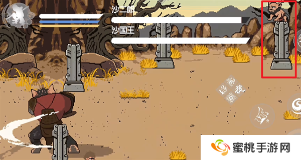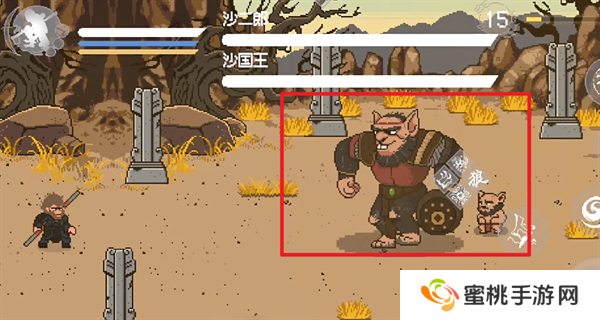 2、沙二郎会近身对玩家发起攻击,而沙国王则会跳到石柱上面通过扔石块的方式进行攻击。