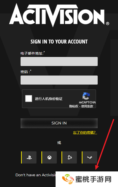 1、点击使命召唤战区官网的入口链接进入动视的网站,打开动视账号的登录界面,点击最下方的建立一个账号。