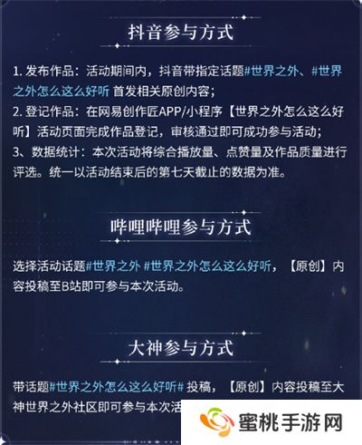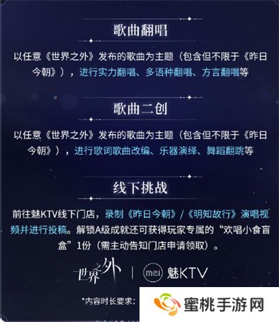 世界之外年度音乐挑战赛,将在B站、抖音、网易大神三平台同步开启!投稿赢取现金及线下门店好礼!