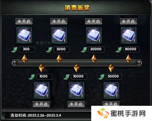 活动期间内消费点券达到指定数量可领取超值返奖,共7阶消费礼包可供选择。
