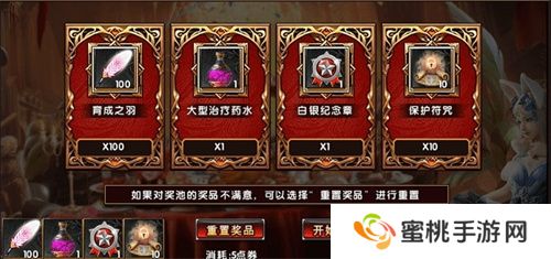 2、 可直接选择“放弃”按钮或消耗点券选择“重置”按钮重置四张卡牌的奖励内容;
