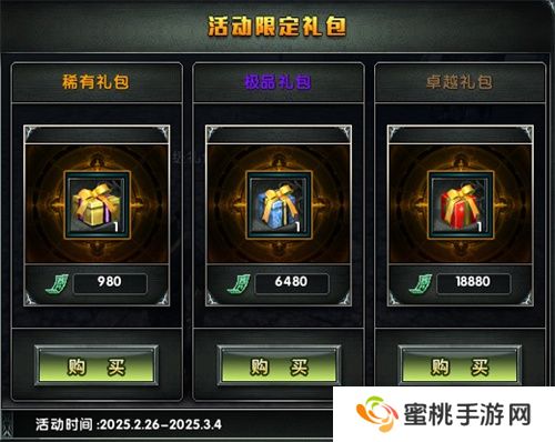 新区种族争霸推出超高价值特别限定礼包,三种档位可供选择,每个档位都包含超高福利,限定特惠,仅可在开服期间购买。