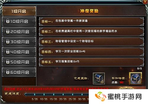 新区创建角色,每当角色达到1、10、20、30、40、50、60级并完成相应的目标时,会免费获得对应的等级礼包,同时也可以购买超值折扣礼包。