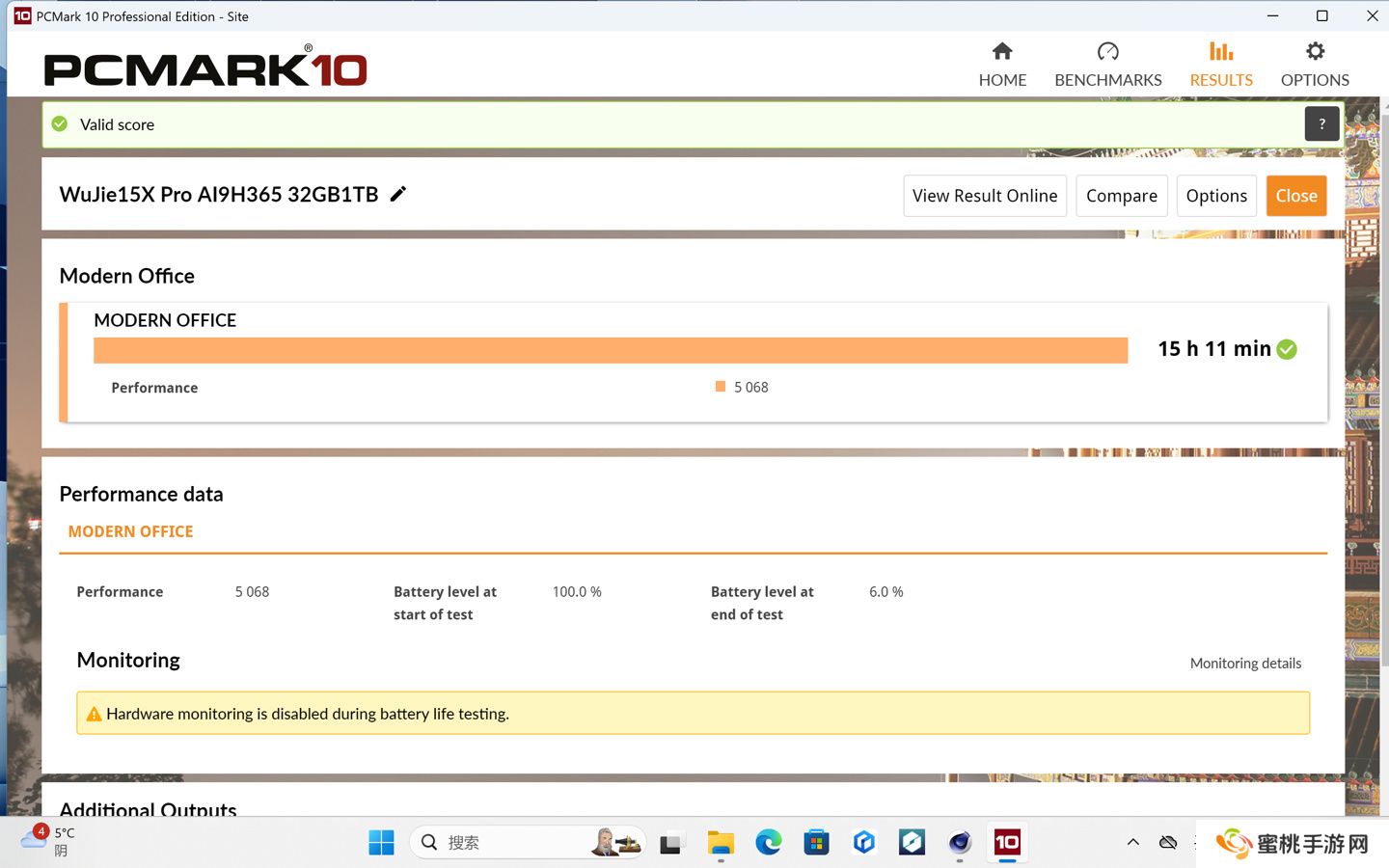 如图所示,PCMark 10 显示这款机型搭载了AMD 最新的锐龙 AI 9 H 365 处理器,配备 32GB 内存、1TB 固态硬盘,常规办公状态下续航可达 15 小时 11 分钟。