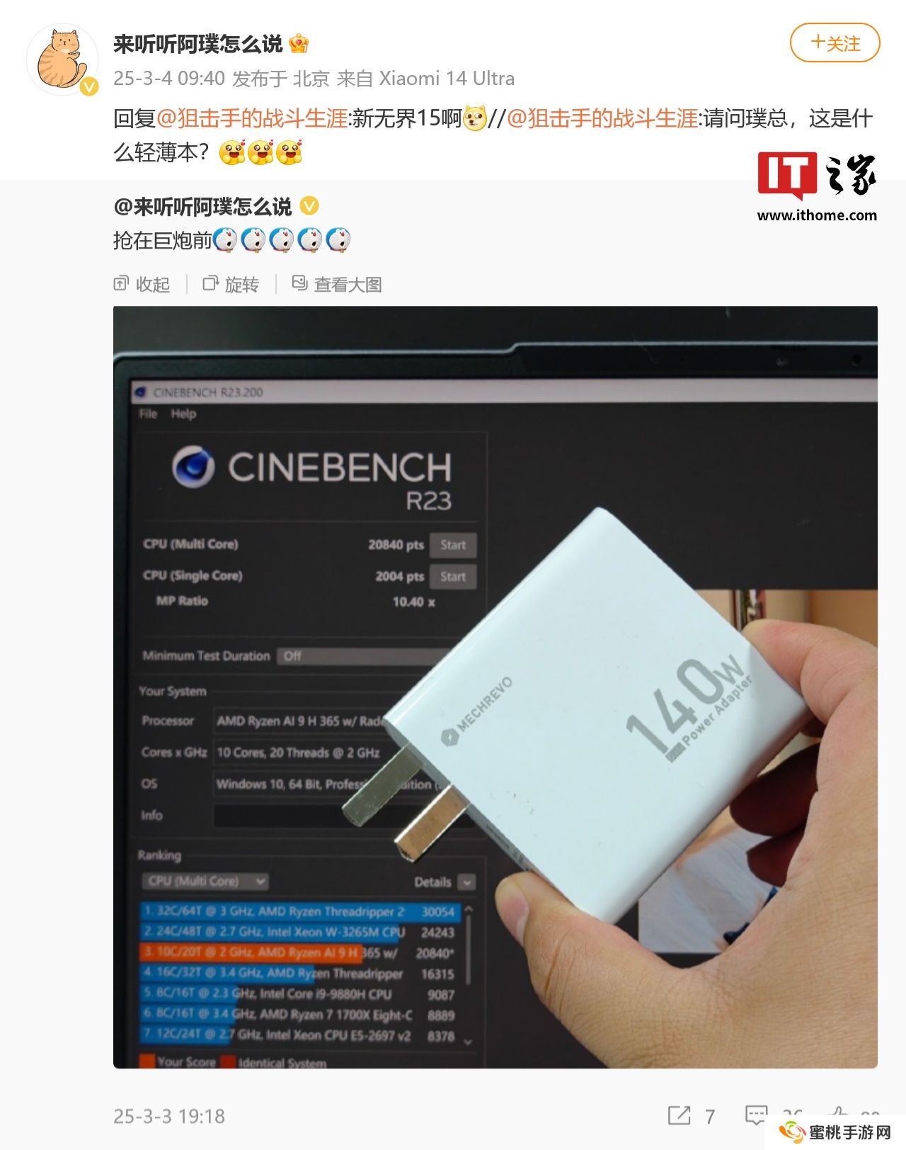 结合他周二发布的预热,这款机型还将配备 140W 电源适配器,暗示其性能释放不会太保守。