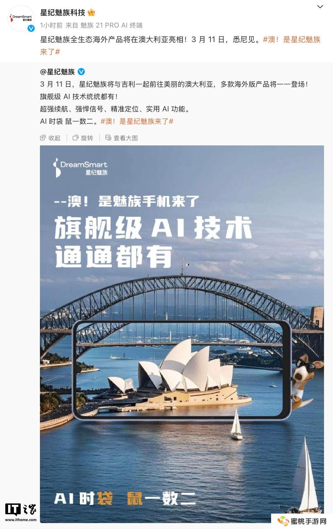 本站 3 月 9 日消息,星纪魅族官方本月(3 月 7 日)宣布旗下全生态海外产品将于 3 月 11 日在澳大利亚亮相,相应产品将配备“旗舰级 AI 技术”,主打“续航、信号、精准定位、实用 AI 功能”等特性。