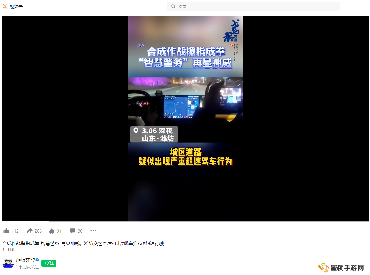 3 月 7 日下午,潍坊市公安局交警支队接到网友举报称,3 月 6 日深夜在城区道路疑似出现严重超速驾车行为。