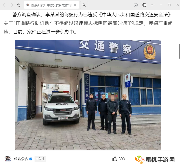 本站 3 月 8 日消息,今日,山东潍坊公安通报了一起在公共道路驾驶车辆严重超速案件。