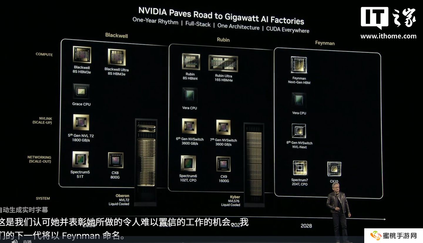 随后,黄仁勋在一个路线图 PPT 中宣布,Rubin 之后的下一代命名Feynman,取自著名物理学家理查德・费曼。