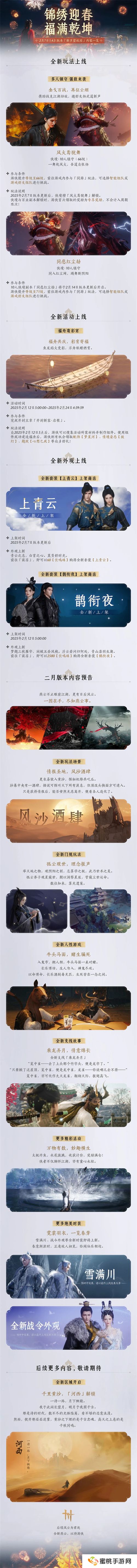 玩法内容持续更新,新区域河西3月上线:除了新外观、新等级、新多人BOSS以外,下周还将进行含新支线剧情、孤云门派玩法、新限时玩法在内的诸多玩法内容更新。后续,还将有全新大型玩法活动、系列福利主题活动等正蓄势待发。